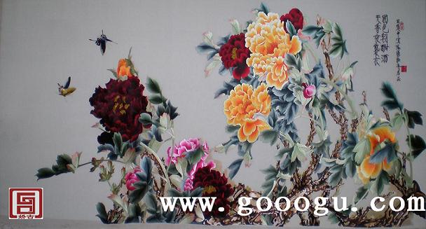 牡丹刺繡畫(huà)|蘇繡壁畫(huà)|大型手工刺繡掛畫(huà)