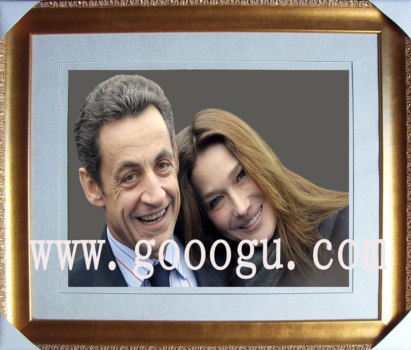 人物刺繡肖像訂制 法國(guó)總統(tǒng)薩科奇及夫人布呂尼人物照片刺繡照 手工刺繡