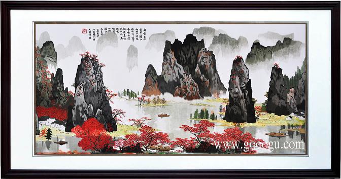 蘇繡裝飾畫/深秋行旅圖、山水裝飾畫/大型手工刺繡畫