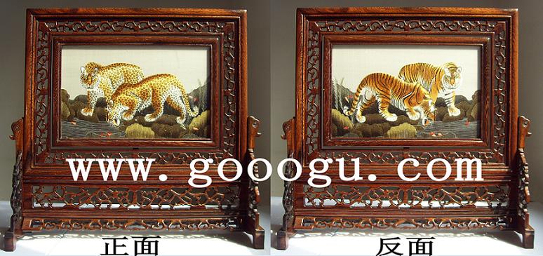 嬌古蘇繡16X25CM雞翅木雙面繡橫座屏,手工刺繡工藝品饋贈老外特色禮品