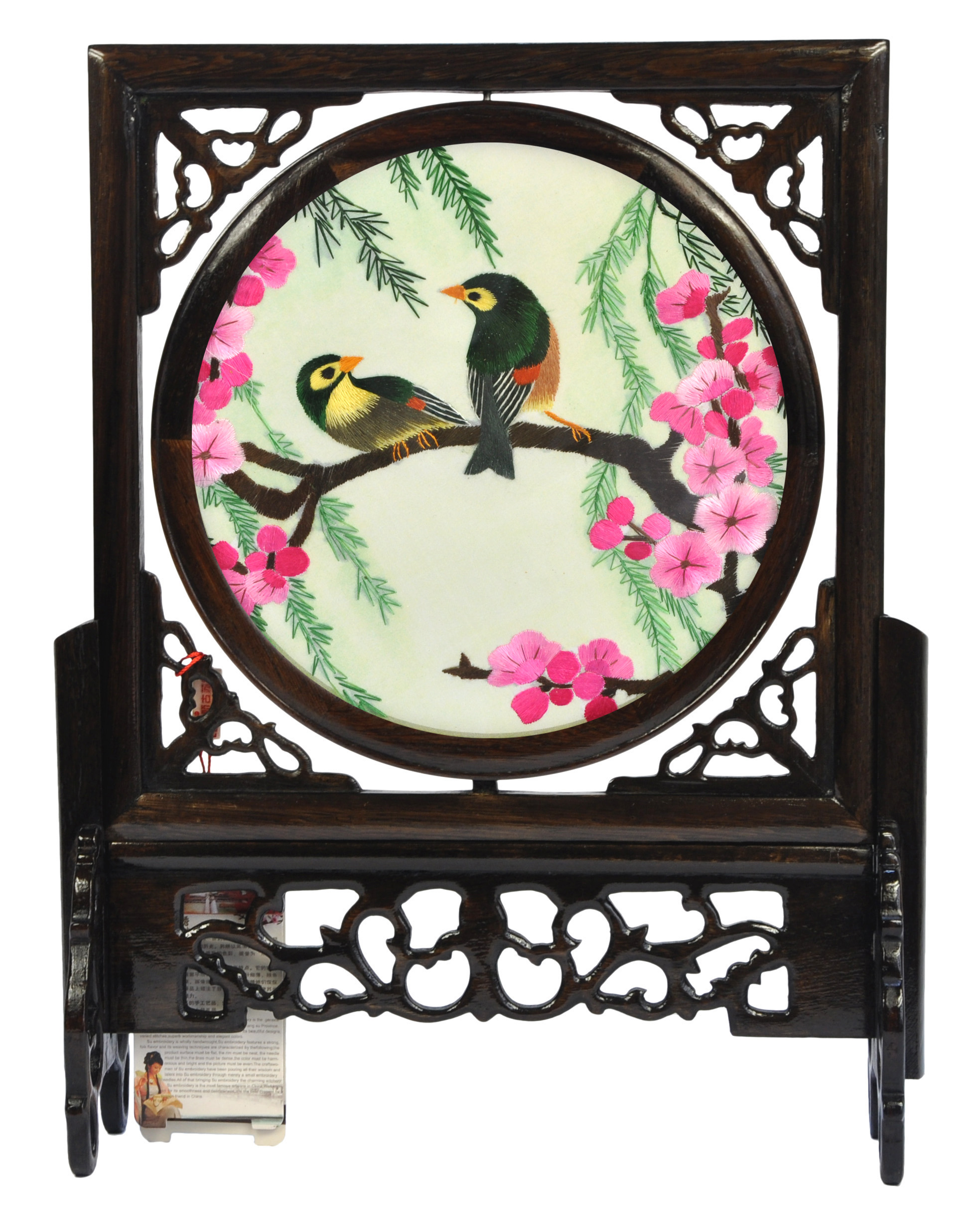 新款嬌古16X25CM雞翅木雙面繡豎座屏,蘇州本土手工藝品企業(yè)商務(wù)刺繡禮品