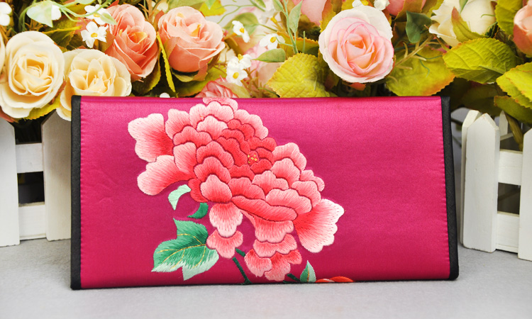 平繡牡丹 純手工刺繡 蘇繡錢包 高檔特色禮品 送領(lǐng)導(dǎo)送外國人禮品