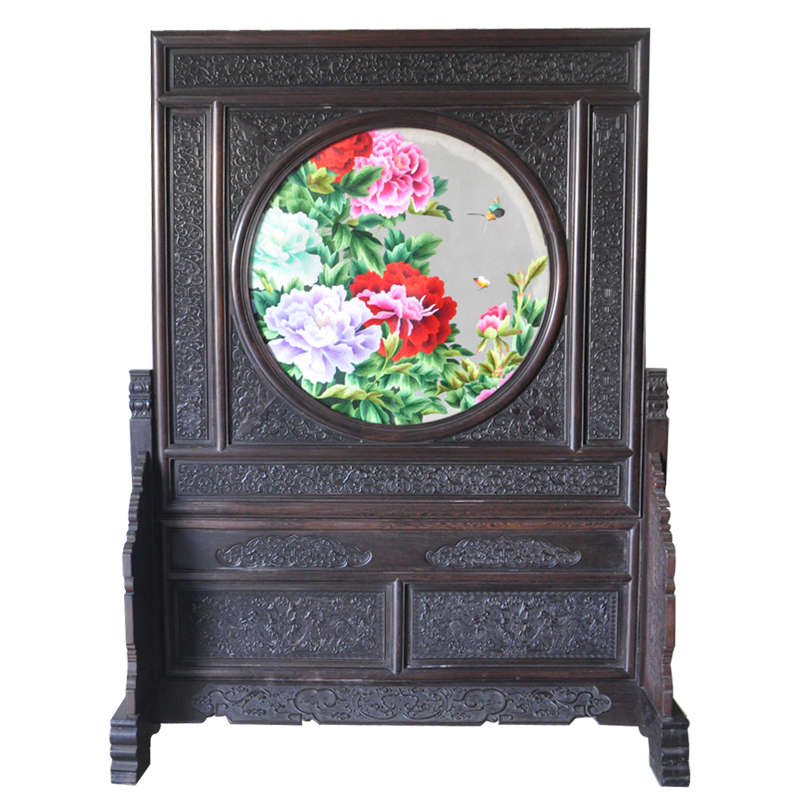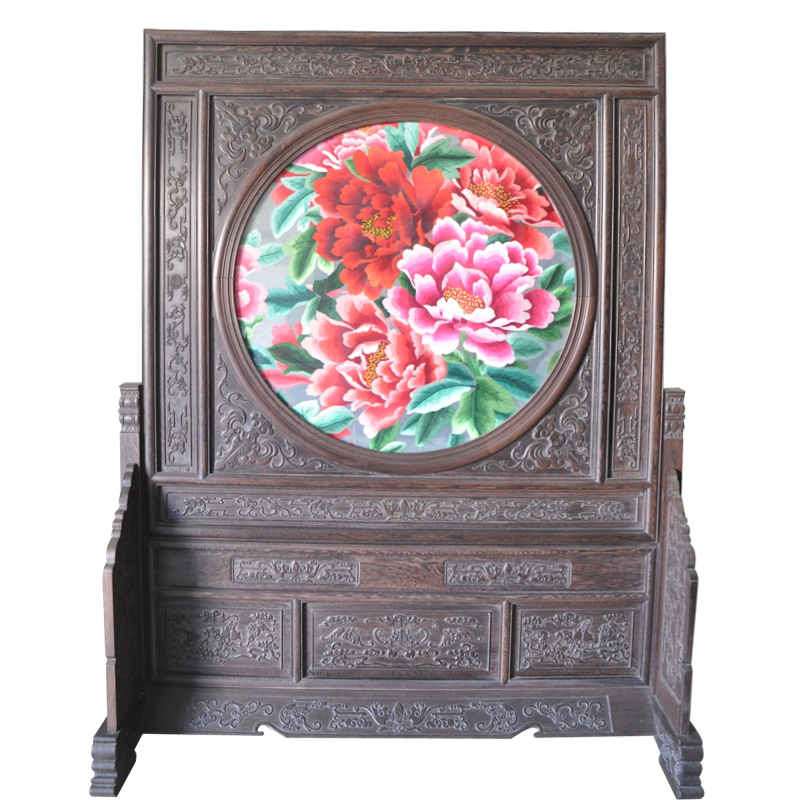 蘇繡隔斷 玄關牡丹屏風 手工雙面刺繡 國花傳統工藝品禮品