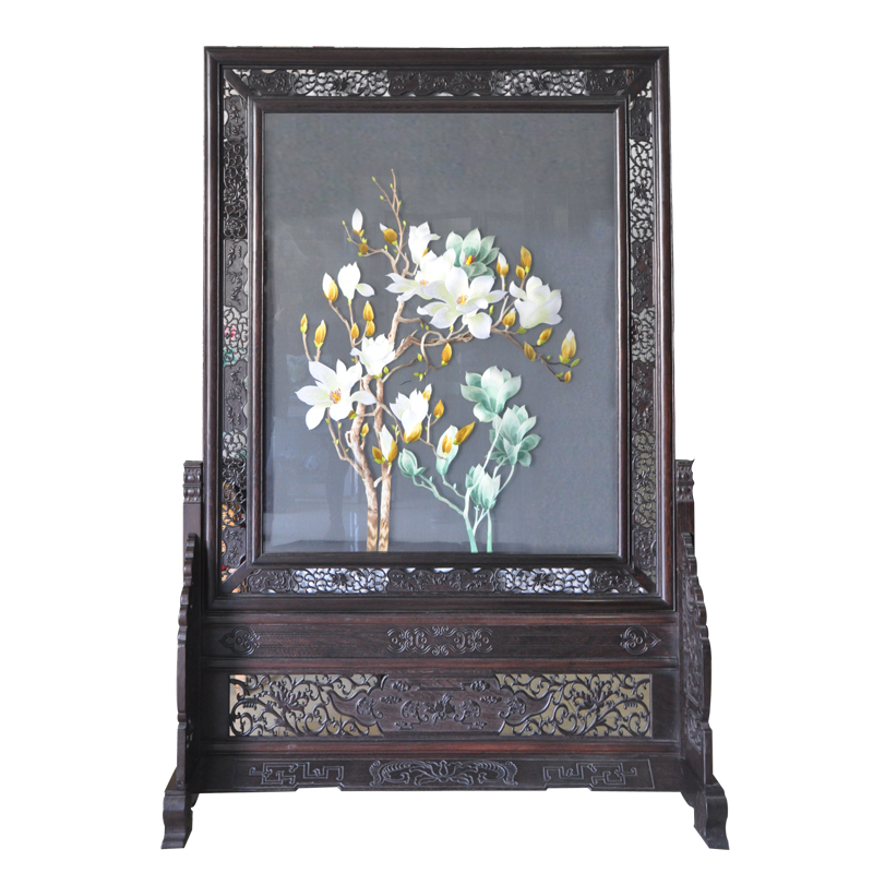家用蘇繡隔斷 玉蘭雙鳥屏風 精品雙面刺繡 國花傳統工藝品禮品