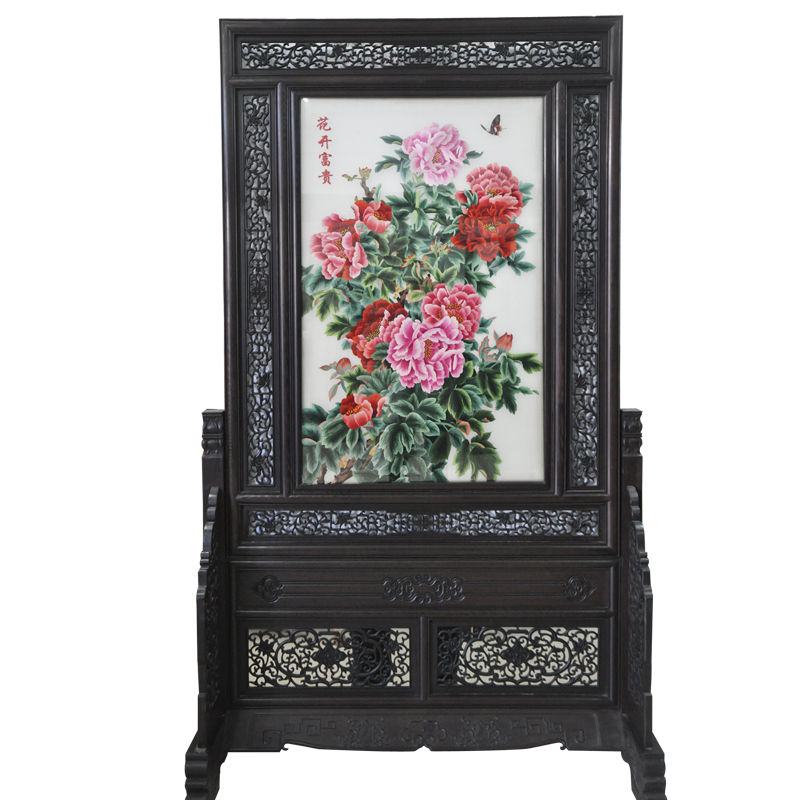 蘇繡木質(zhì)屏風(fēng)家用中國風(fēng)刺繡牡丹圖手工酒店玄關(guān)蘇繡