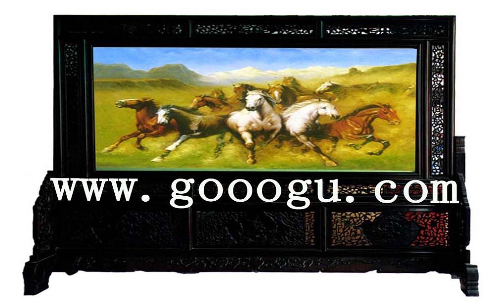 六米駿馬蘇繡屏風&大型手工刺繡雙面屏風&精品木雕手繡屏風