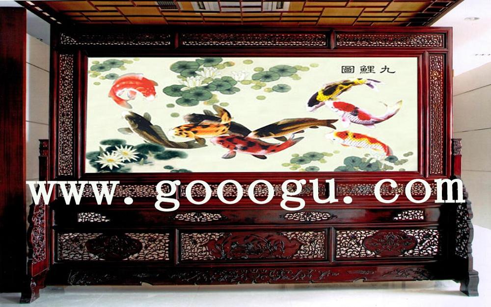 5.5米蘇州刺繡屏風&大型九魚圖蘇繡屏風&大型風水玄關擺件