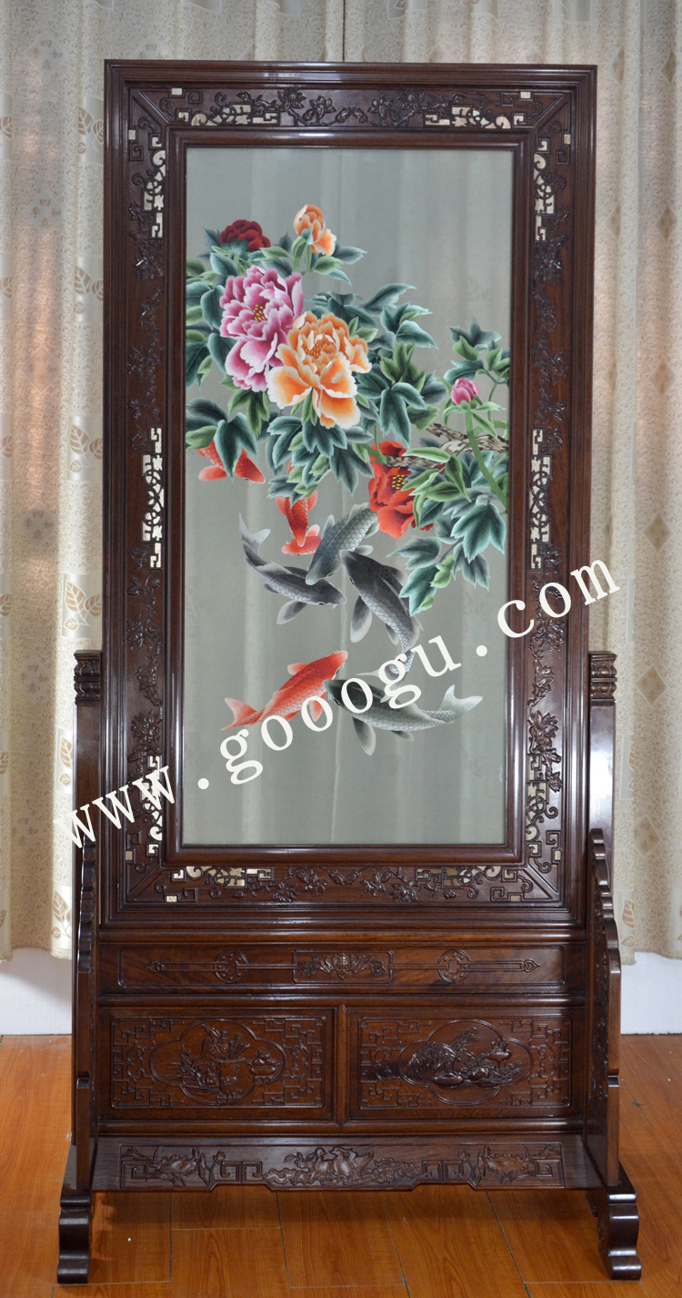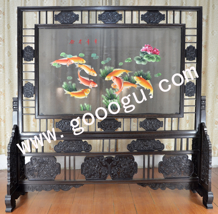 蘇繡屏風(fēng) 簡易框架 雙面繡 年年有余 雞翅木 家用隔斷