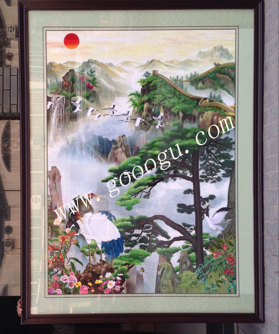 在一次出差過程中,黃先生來到蘇州,無意中發(fā)現(xiàn)了蘇繡的奇特,為此,黃先生來到嬌古蘇繡,把自己的想法和要求告訴了嬌古的工作人員,在經(jīng)過很多圖片的帥選之后,確定下來訂做這款《錦繡中華》的作品。